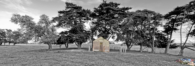 My four sisters and I gathered in 2023 to mark the centenary of the birth of our father. We read his favourite poems aloud and we walked across the farm (now owned by our cousin) where we had grown up. As we walked we talked, remembering childhood incidents and retelling old stories. We visited the site of the house we’d lived in until 1967, before we ‘moved across the paddock’. The old house is long gone, but a one-roomed hut that sat adjacent to the house still remains. As we approached, we noticed a rotting pile of old clothing. Upon closer inspection we recognised the clothing; our childhood clothes, our mother’s dresses, patched trousers belonging to our father. What were they doing here?