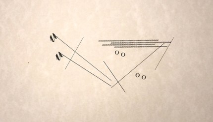 Ch’i responds to a journey I made to Guangzhou in 1995 to study traditional Chinese landscape painting on fans. The book extends the traditional compositions and principles of Ch’i that I learnt in the Guangzhou studio into a digital environment. The six fan images were produced on a Macintosh computer from photographs that I took in China. The text pages (example shown here) explore similar themes through geometric compositions. CH’I is designed to be held fan-like in the hand, the pages then open forwards, toward the body.